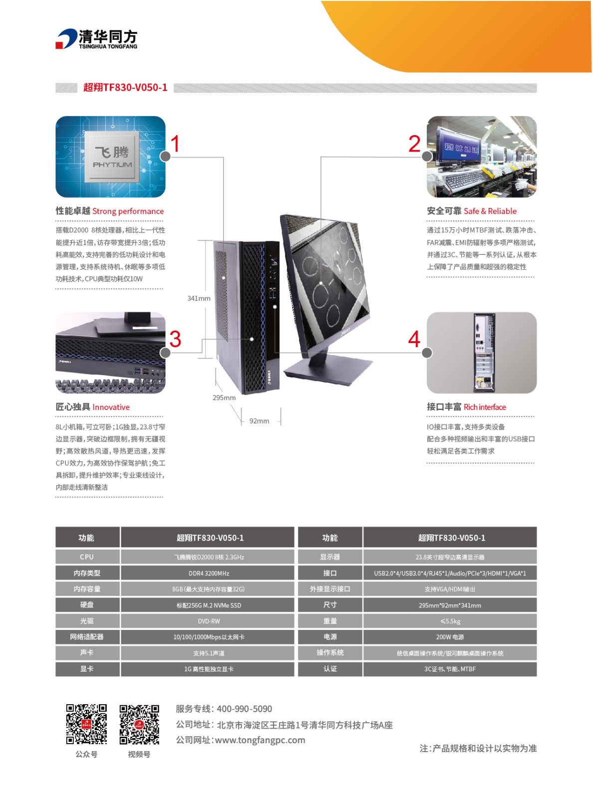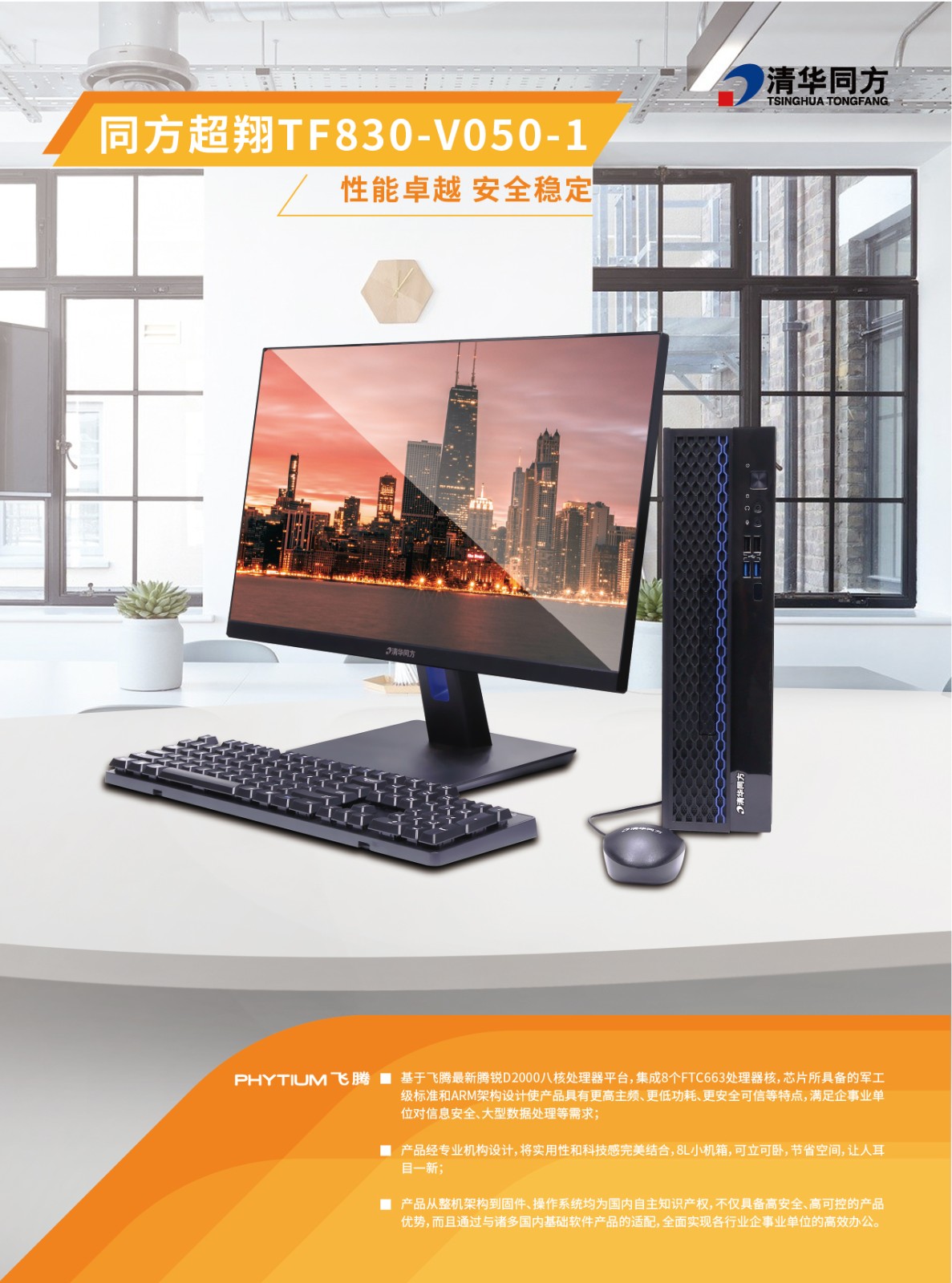 清華同方/THTF 臺式計算機 超翔TF830-V050-1 23.8英寸超窄邊高清顯示器